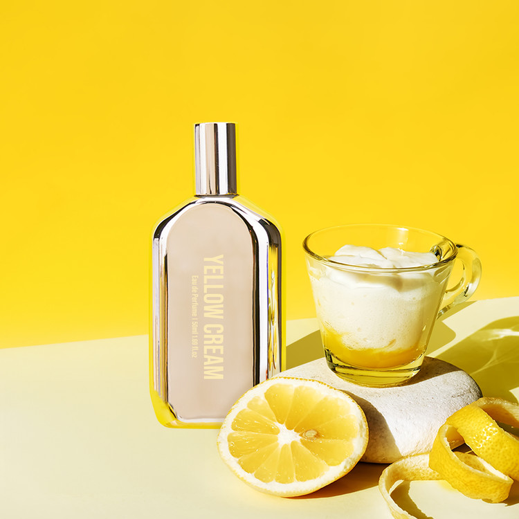 This scent conveys a sense of leisure that begins with a refreshness, like taking a bite of a soft pound cake topped with vanilla ice cream and lemon zest and finishes with a warm and nutty scent.